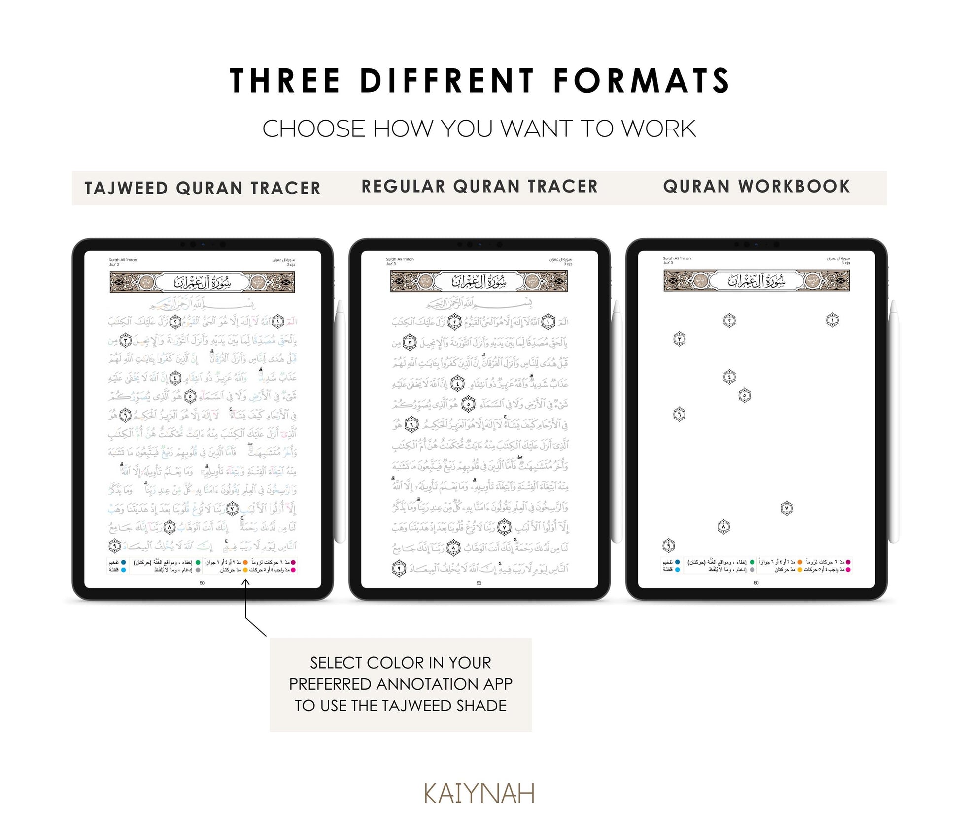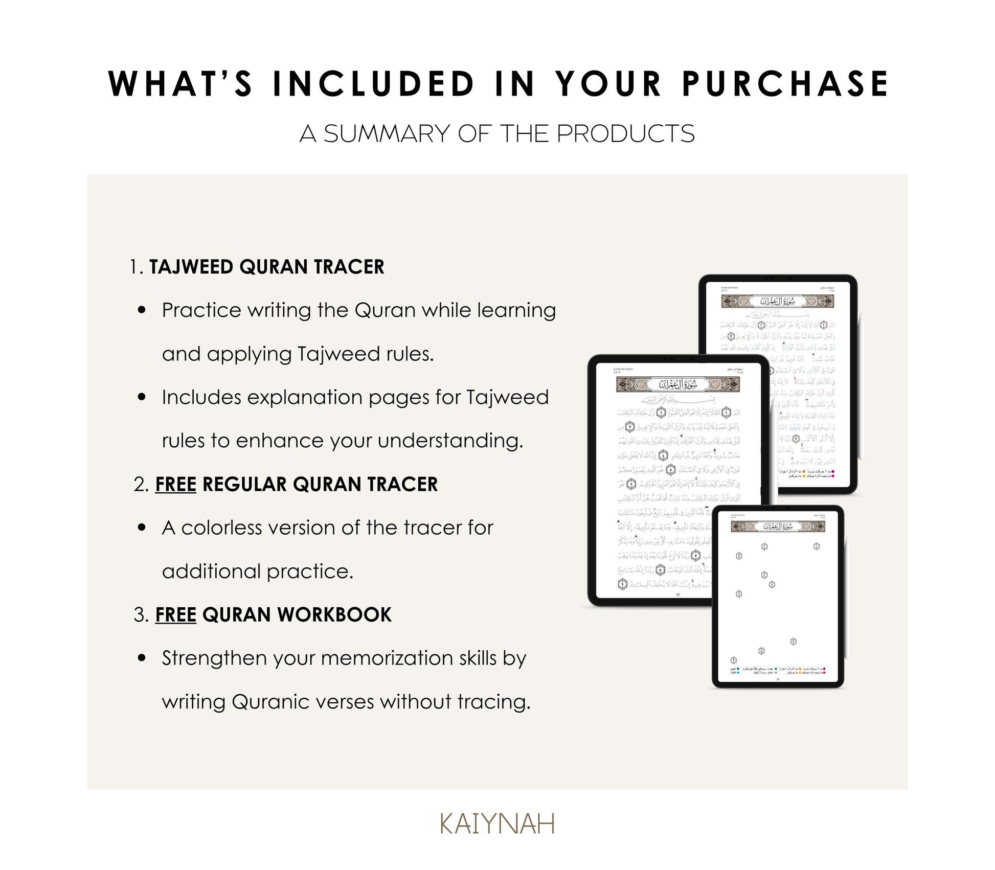 Beige Digital Quran Tracer Tajweed + Regular + Workbook (30 Juz)