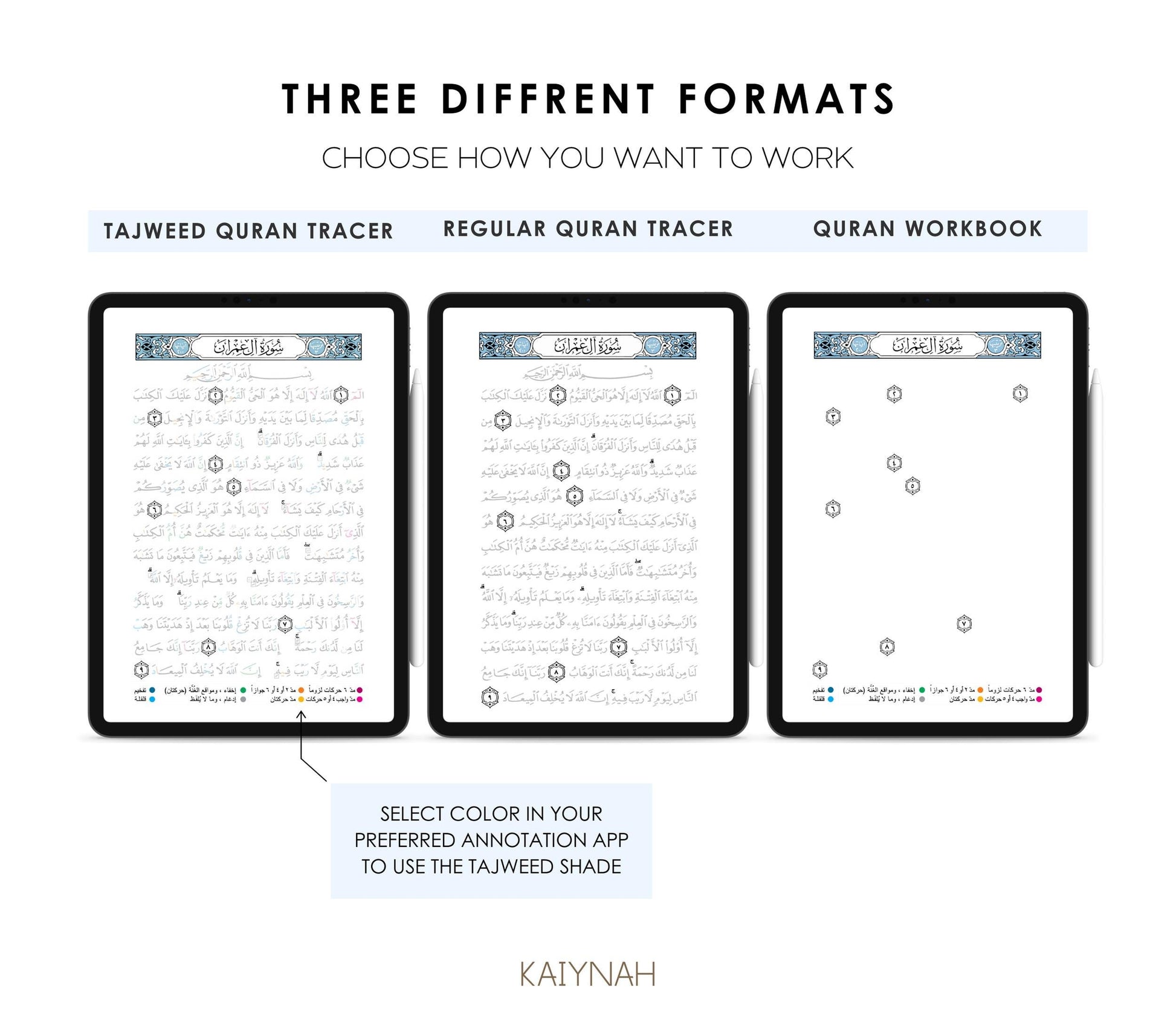 * Tajweed & Regular Version – Choose the script that suits your learning needs.