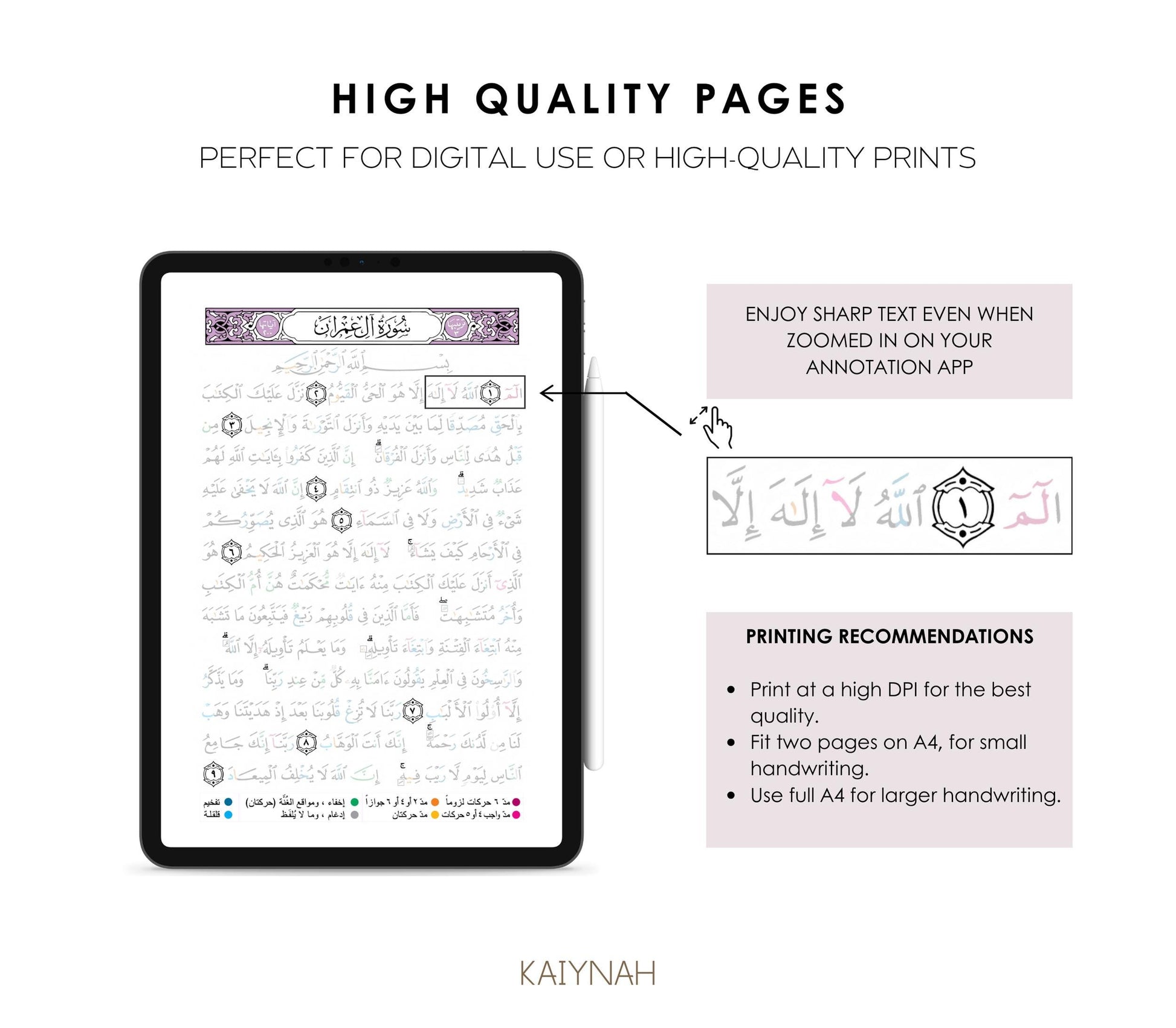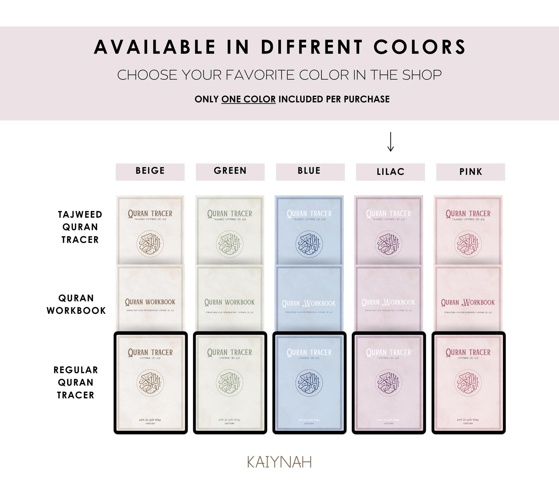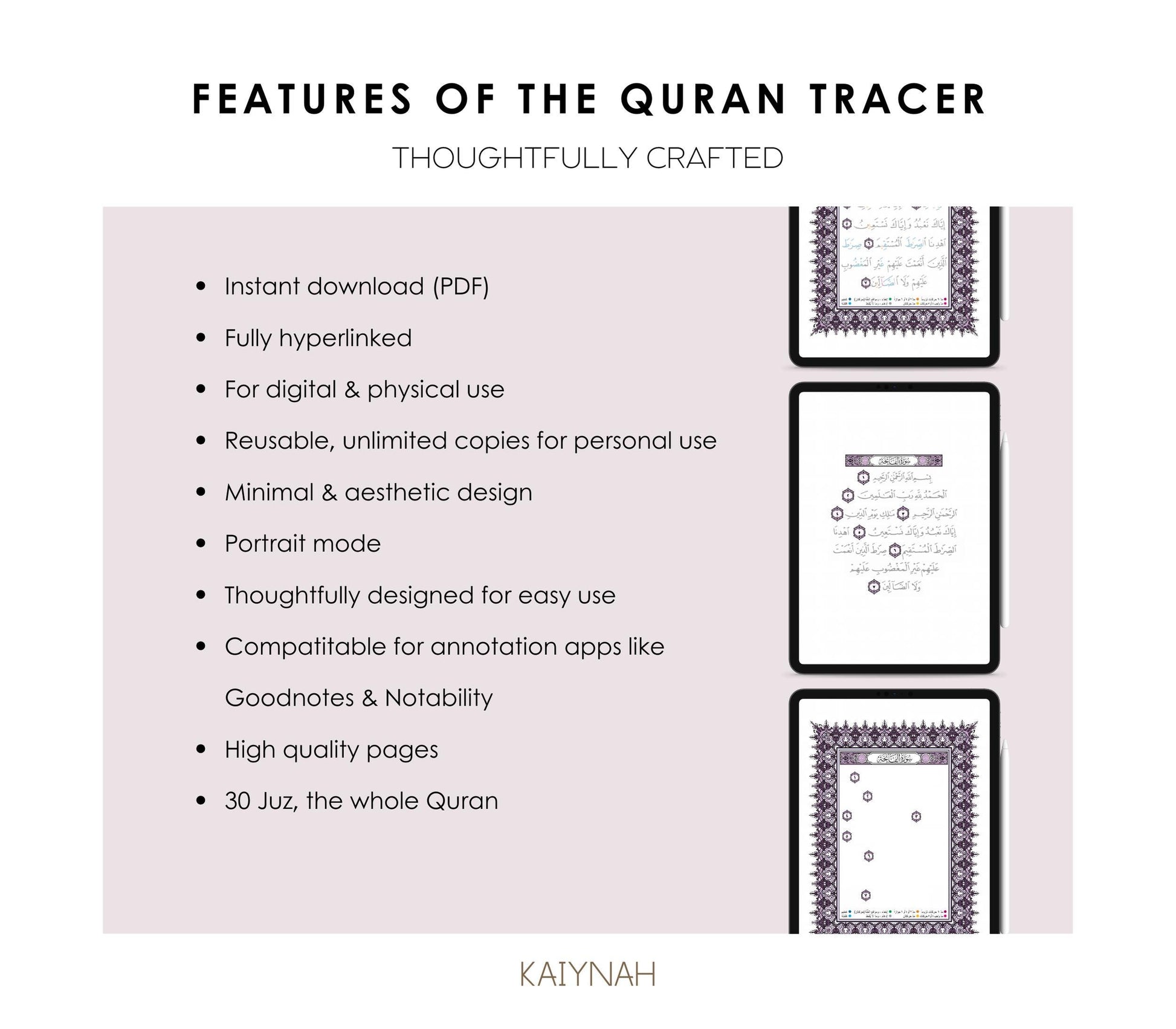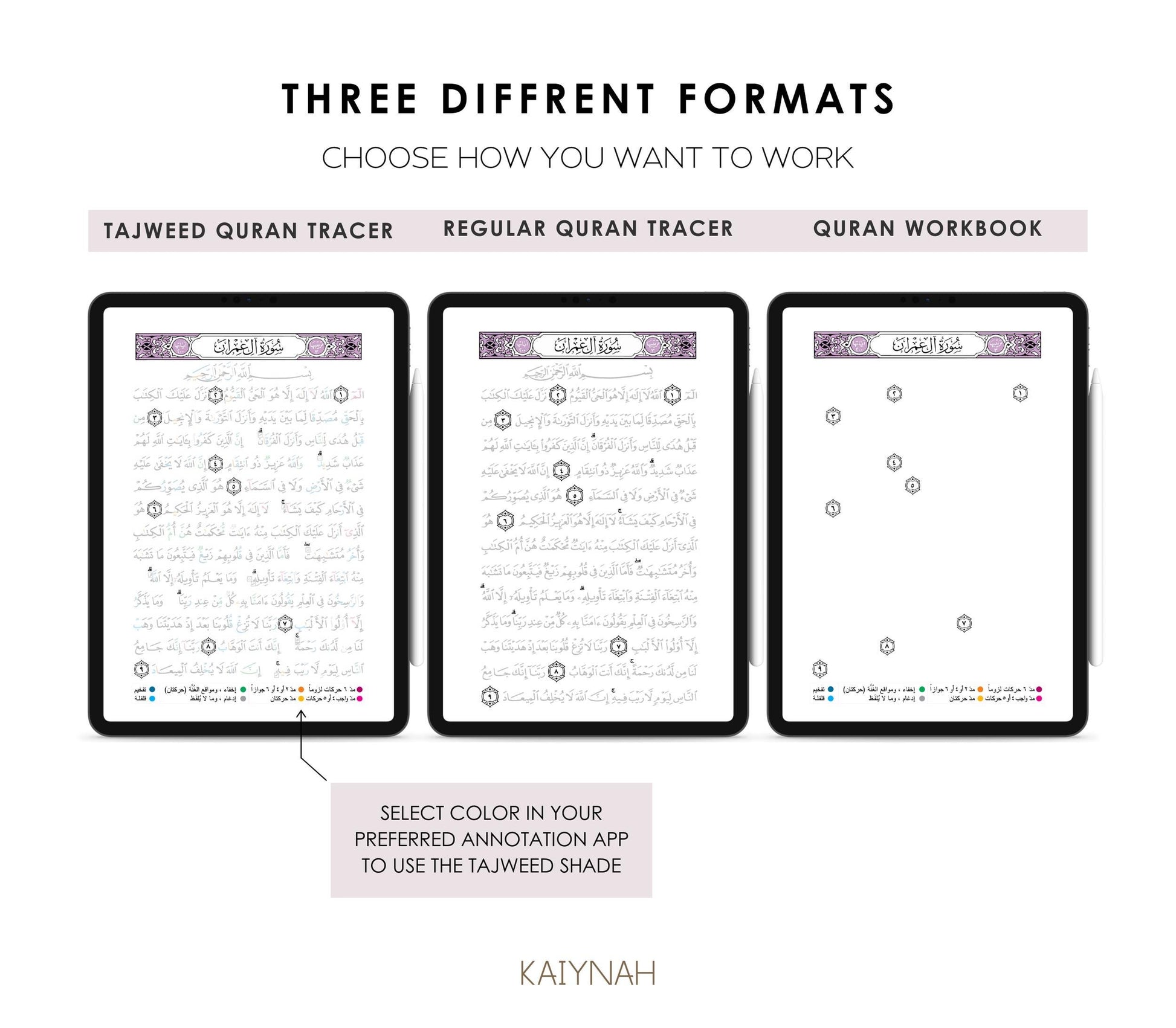 Lilac Digital Quran Tracer Tajweed + Regular + Workbook (30 Juz)